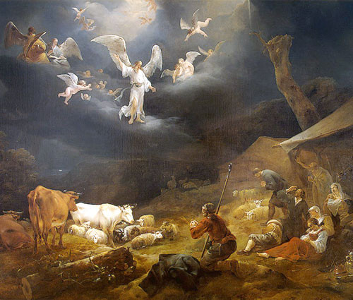 在伯利恒之野地里有牧羊的人,夜间按着更次看守羊群。有主的使者站在他们旁边,主的荣光四面照着他们;牧羊的人就甚惧怕。那天使对他们说:“不要惧怕!我报给你们大喜的信息,是关乎万民的;因今天在大卫的城里,为你们生了救主,就是主基督。你们要看见一个婴孩,包着布,卧在[马]槽里,那就是记号了。”