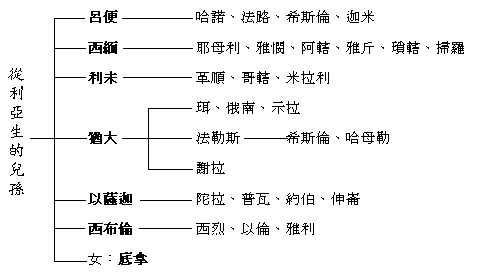 (一)在民数记,西缅只有五个儿子,名字如下:尼母利,雅悯,雅斤,谢拉,扫罗(民廿六12~13)。