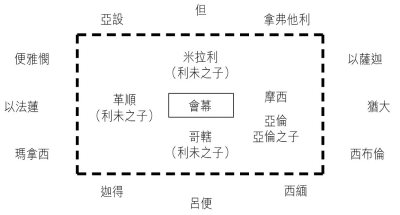 目睹两个哥哥因不遵从神吩咐而被烧死。顺从神,成为会幕领袖之首。 |
