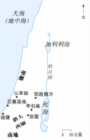 迦南,后称为以色列。这地原是许多邪恶民族聚居的地方,神帮助以色列人占领这地,但是他们不顺服神,在信仰上向迦南人妥协,于是面临失去这地的危机。 |