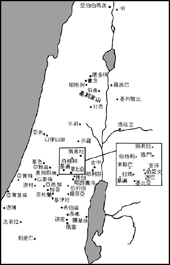 一直以来以色列分割为两个小的王国互相攻击,而非利士人看来很少采取行动;但当大卫成为联合以色列的王后,他们马上发动攻击。可能他们第一次的攻击,发生在大卫占领耶路撒冷之前;十七节提及的保障,可能指亚杜兰,曾经一度是扫罗追捕大卫时,作为大卫的总部一段时期(看下图)。利乏音谷位于耶路撒冷的南部,这里非利士人驻军于两个地方,逼使大卫要分头对付他们。这种策略在基利波对付扫罗时,证明很成功(参见撒上卅一章),但现在他们落在大卫的手里,遭遇两次败绩。看来以色列的首次胜利,是因一次前线突袭而得手;第二次,大卫改变他的策略,令他们十分惊慌。这次的胜利,无疑也包括其他圣经没详细记述的原因,引致非利士人被迫撤回到他们在地中海沿岸平原的领土内。这是廿五节提及基色的意思,参见下图。