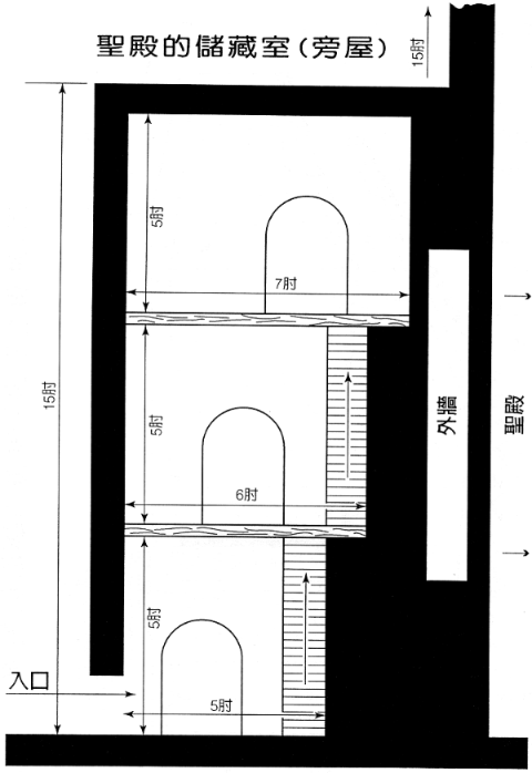 209 亦即较宽的主要入口为五肘(=约7.5英吋;2.5公尺);A. R. Millard,'The Doorways of Solomon's Temple', EI 20, 1989, pp. 135~139.