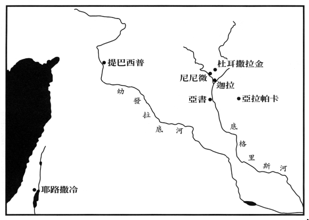 21 A. Parrot, Nineveh and the Old Testament, Studies in Biblical Archaeology 3 (SCM Press, 1955), pp.85~86;由 B. E. Hooke 译自 Ninive et l~Ancien Testament (Delachaux et Niestle, 21955);参 C. F. Keil, pp.390~391; Trible, pp.175~176; D. W. B. Robinson, 'Jonah', in NBC, p.750; Maier, p.62. Wiseman, 'Jonah's Nineveh', p.38. 将亚书利巿(Assur)至迦拉南部的区域全归为大尼尼微区。